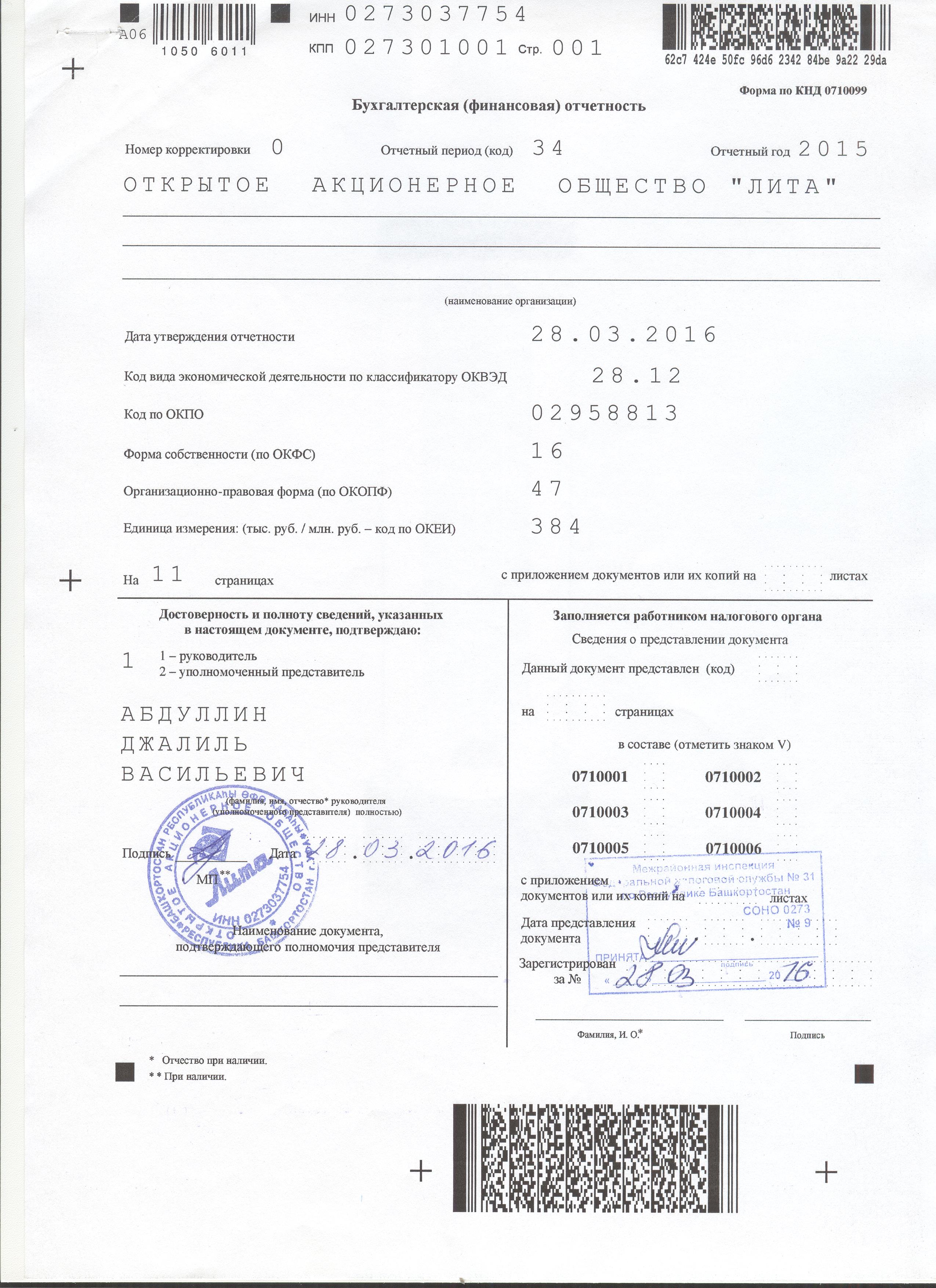 2 | Годовая бухгалтерская отчетность за 2015 г. | 15.06.2016 | 16.06.2016 | Загрузить (19,98 Мб) | |