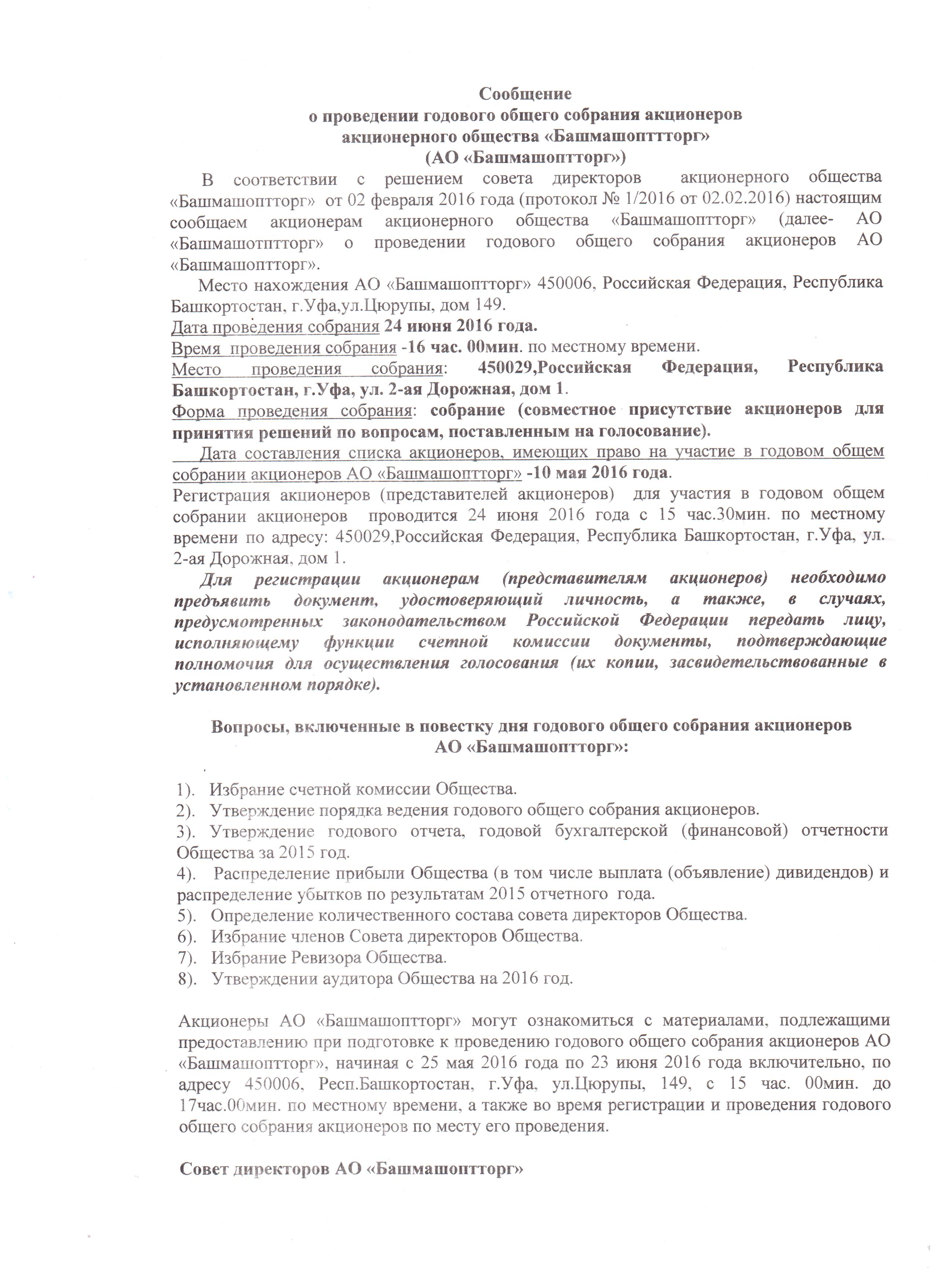 | 8 | Сообщение о проведении Общего собрания акционеров (предусмотрено Уставом Общества) от 01.06.2016 | 17.06.2016 | Загрузить (788,97 Кб) | |