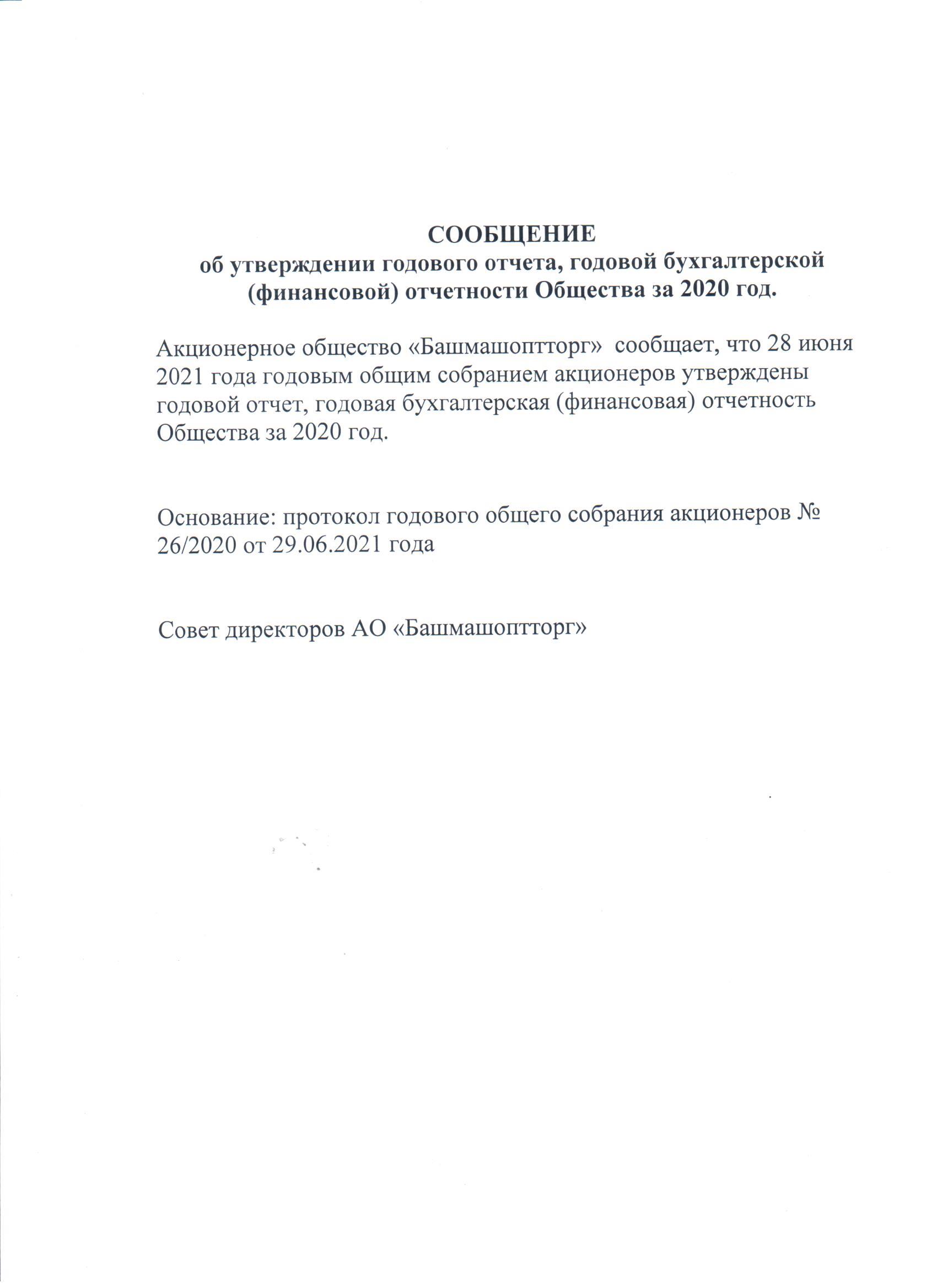 | 7 | Сообщение об утверждении или неутверждении годовой бухгалтерской отчетности (14) | 29.06.2021 | 29.06.2021 | Загрузить (156,71 Кб) |  |
