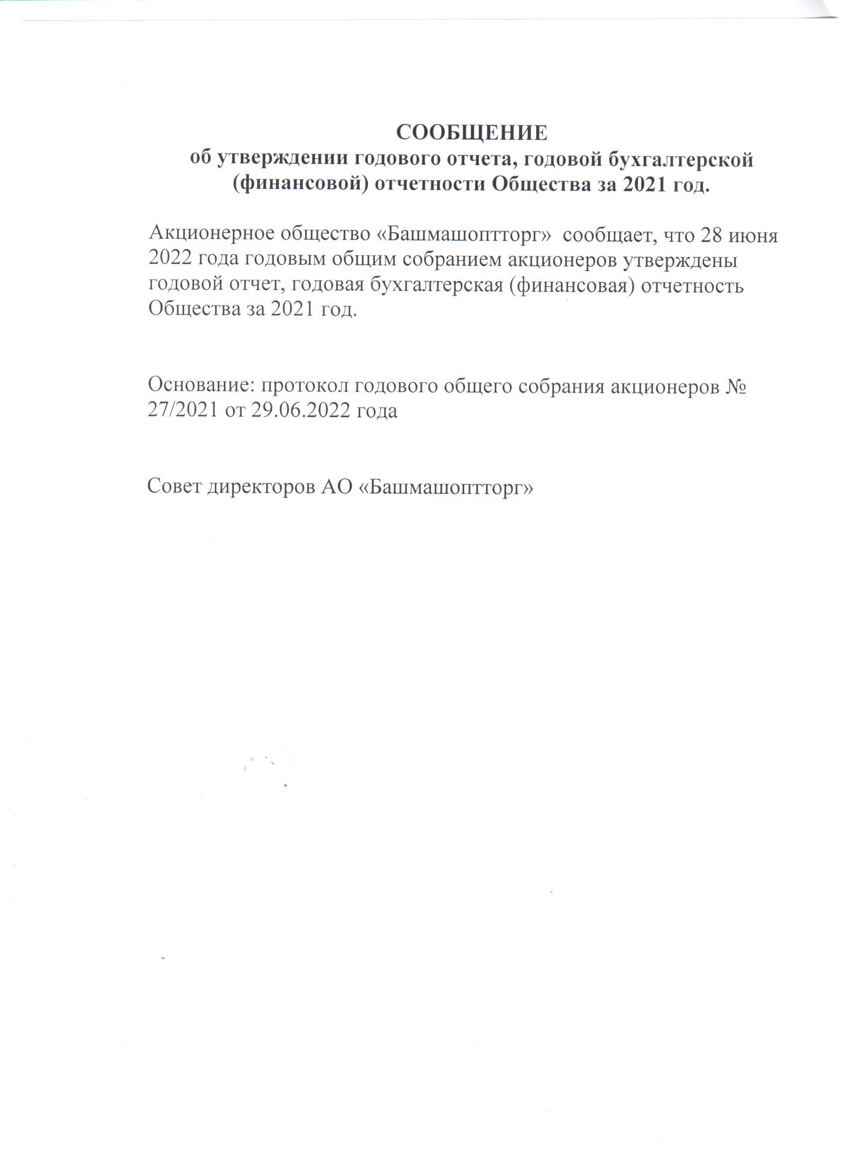 | 6 | Сообщение об утверждении или неутверждении годовой бухгалтерской отчетности (15) | 29.06.2022 | 29.06.2022 | Загрузить (153,42 Кб) |  |