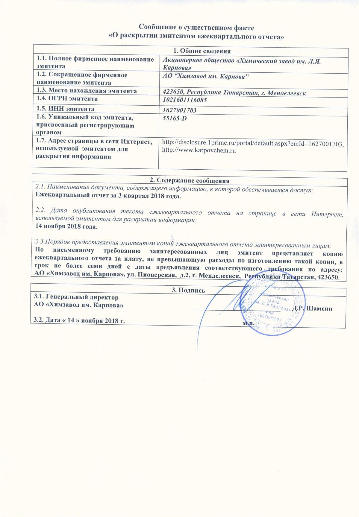 | Сообщение о существенном факте о раскрытии эмитентом ежеквартального отчета от 14.11.2018 (228,07 Кб) |  |
