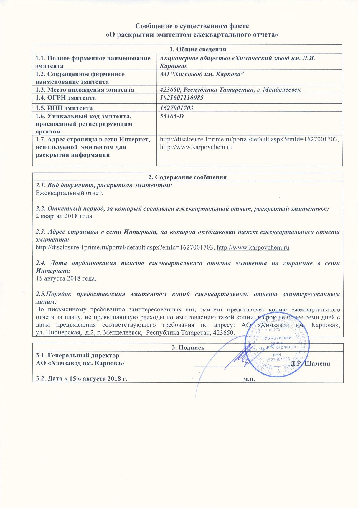 | Сообщение о существенном факте о раскрытии эмитентом ежеквартального отчета от 15.08.2018 (253,23 Кб) |  |