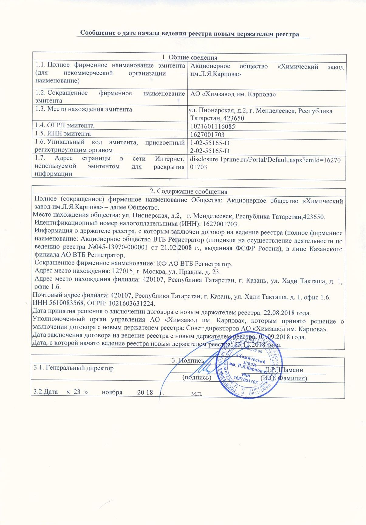 | Сообщение о замене держателя реестра от 22.08.2018 (2,07 Мб) |  |