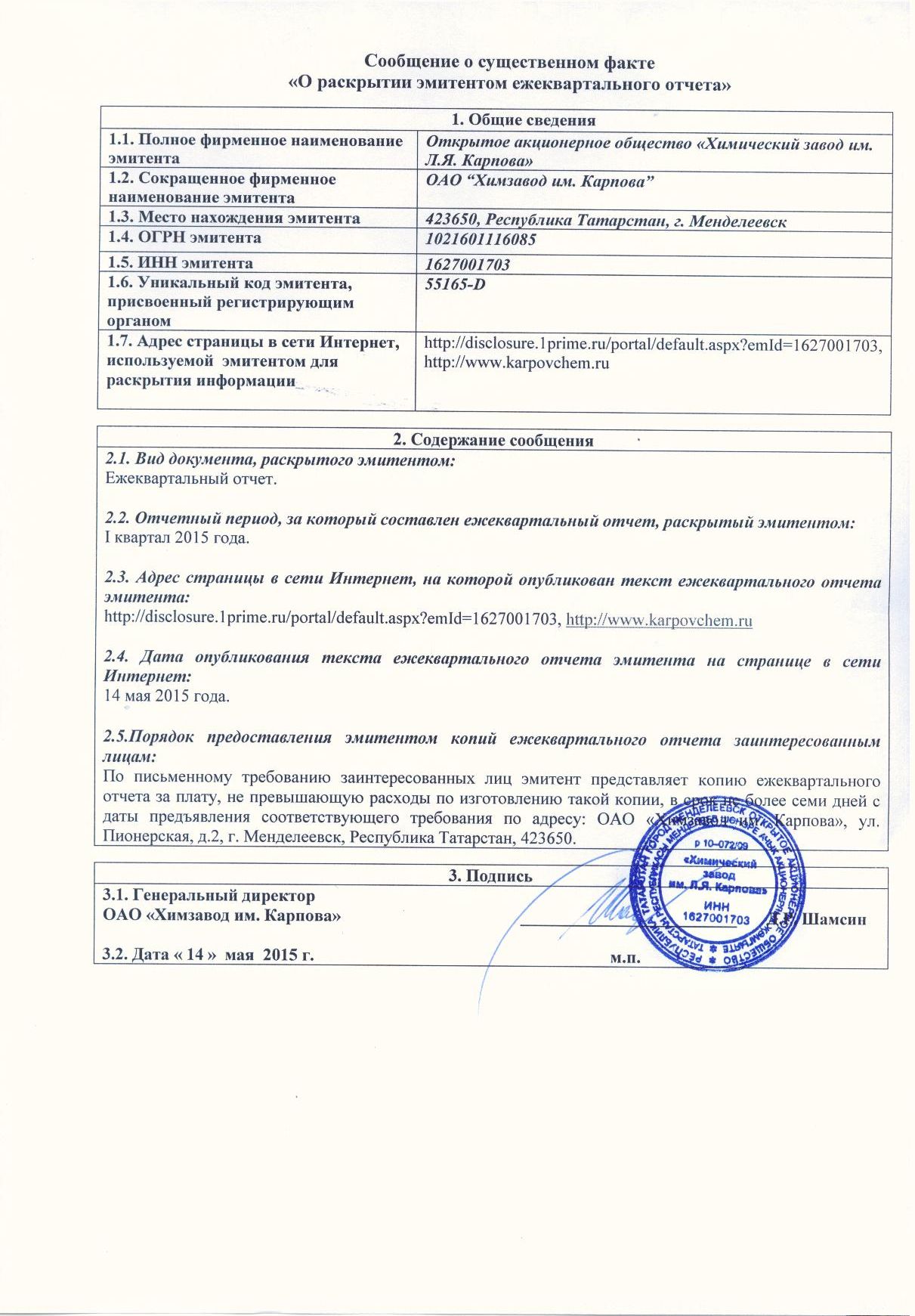 | О раскрытии эмитентом ежеквартального отчета от 14.05.2015 (272,58 Кб) | |