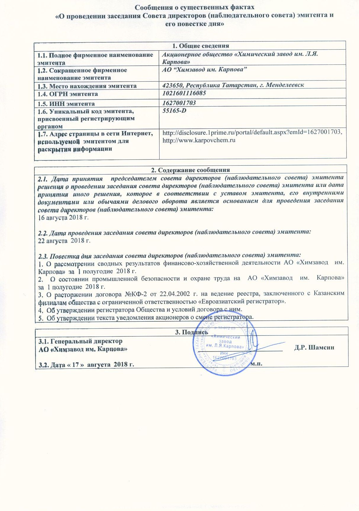 | Сообщение о существенном факте о проведение заседания совета директоров (наблюдательного совета) и его повестка дня от 17.08.2018 (287,45 Кб) |  |