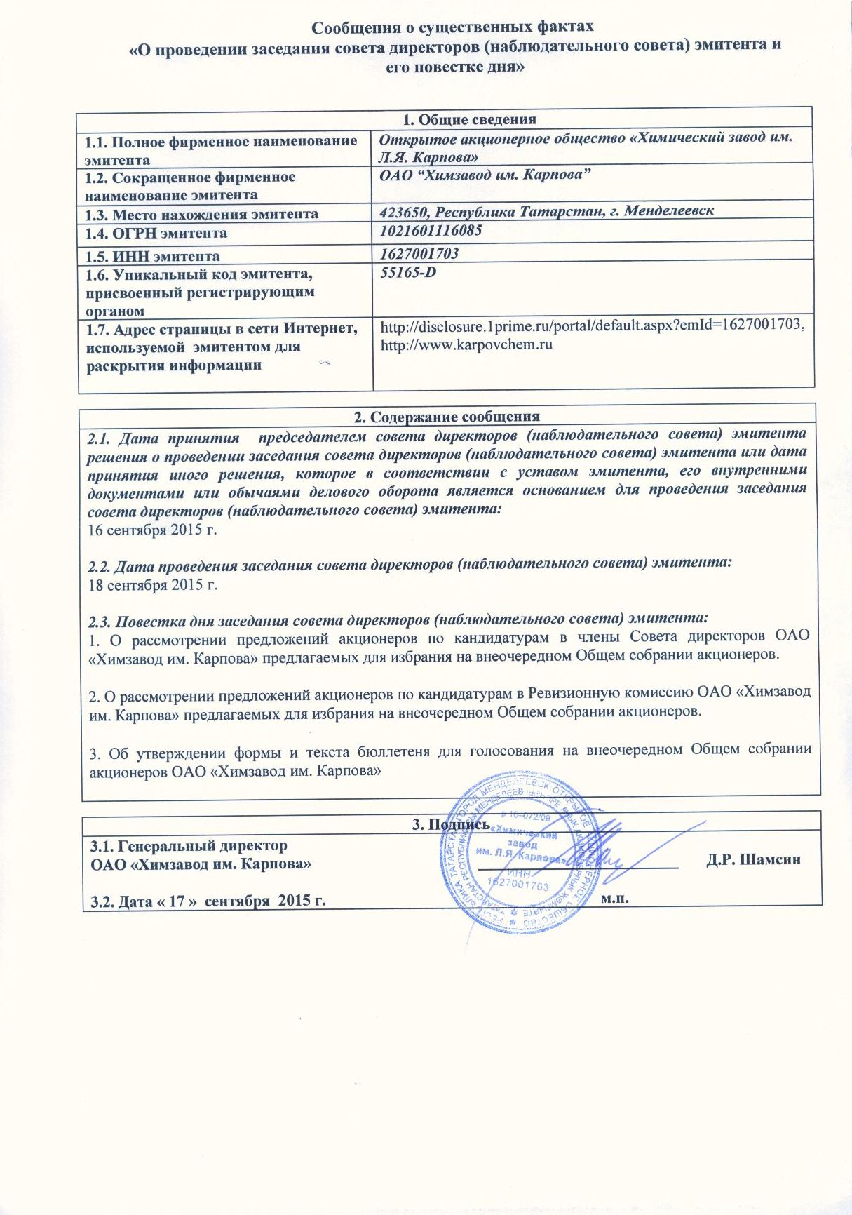 | Сообщение о проведении заседания совета директоров (наблюдательного совета) эмитента и его повестки дня от 17.09.2015 (297,86 Кб) | |