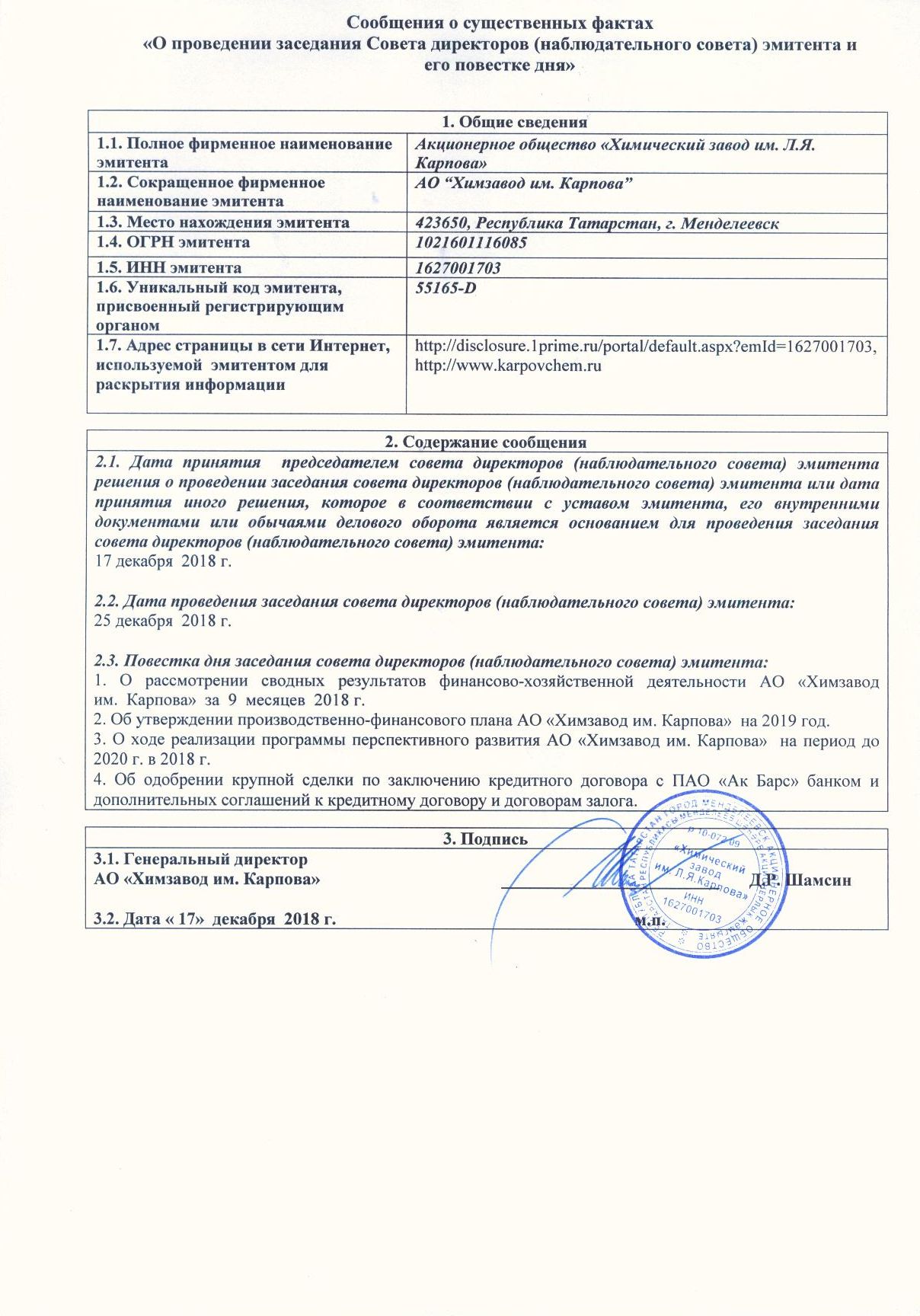| Сообщение о существенном факте о проведение заседания совета директоров (наблюдательного совета) и его повестка дня от 17.12.2018 (282,95 Кб) | |
