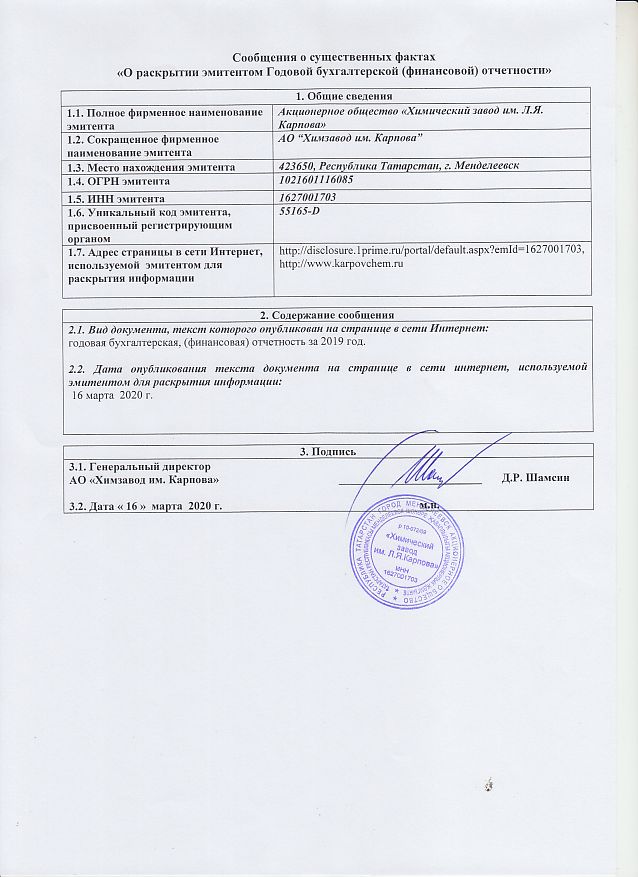 | Сообщение о существенных фактах О раскрытии эмитентом Годовой бухгалтерской отчтености от 16.03.2020 (83,98 Кб) |  |