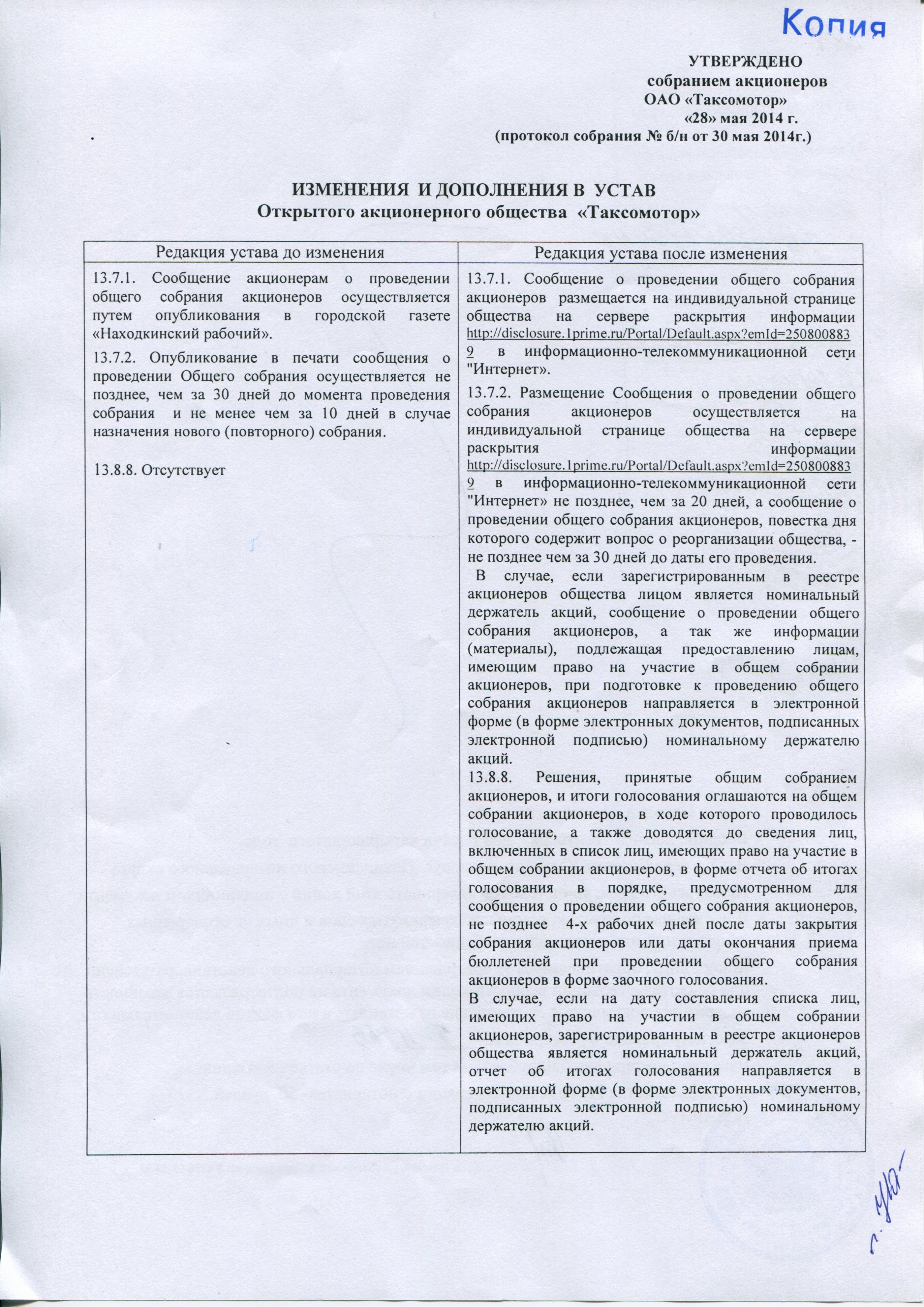 | 1 | Изменения в Уставе | 06.06.2014 | 30.09.2014 | Загрузить (1,49 Мб) | |