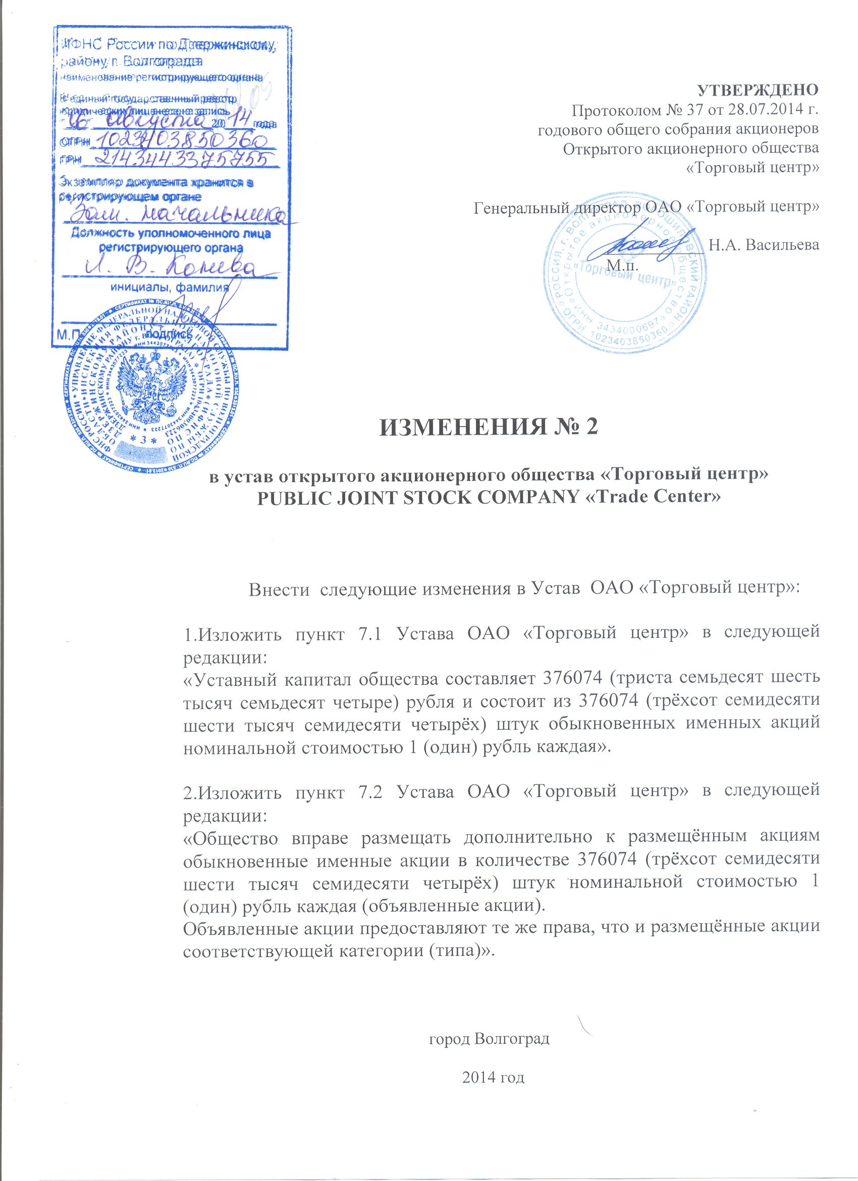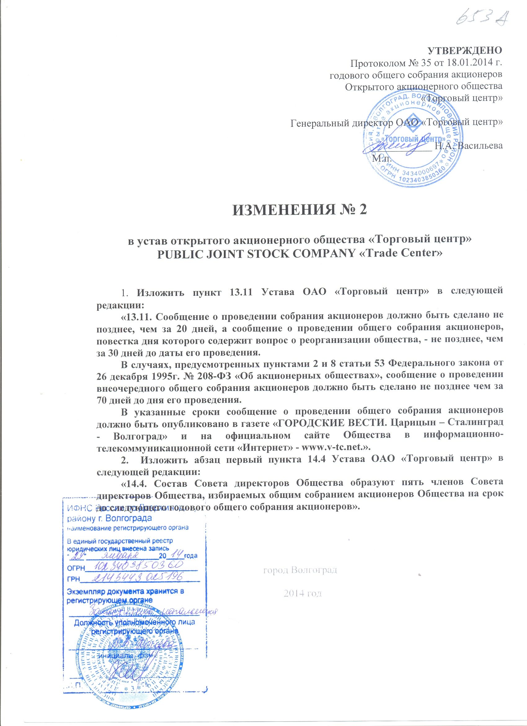 2 | Изменения в Уставе (3) | 08.08.2014 | 08.08.2014 | Загрузить (405,10 Кб) | |