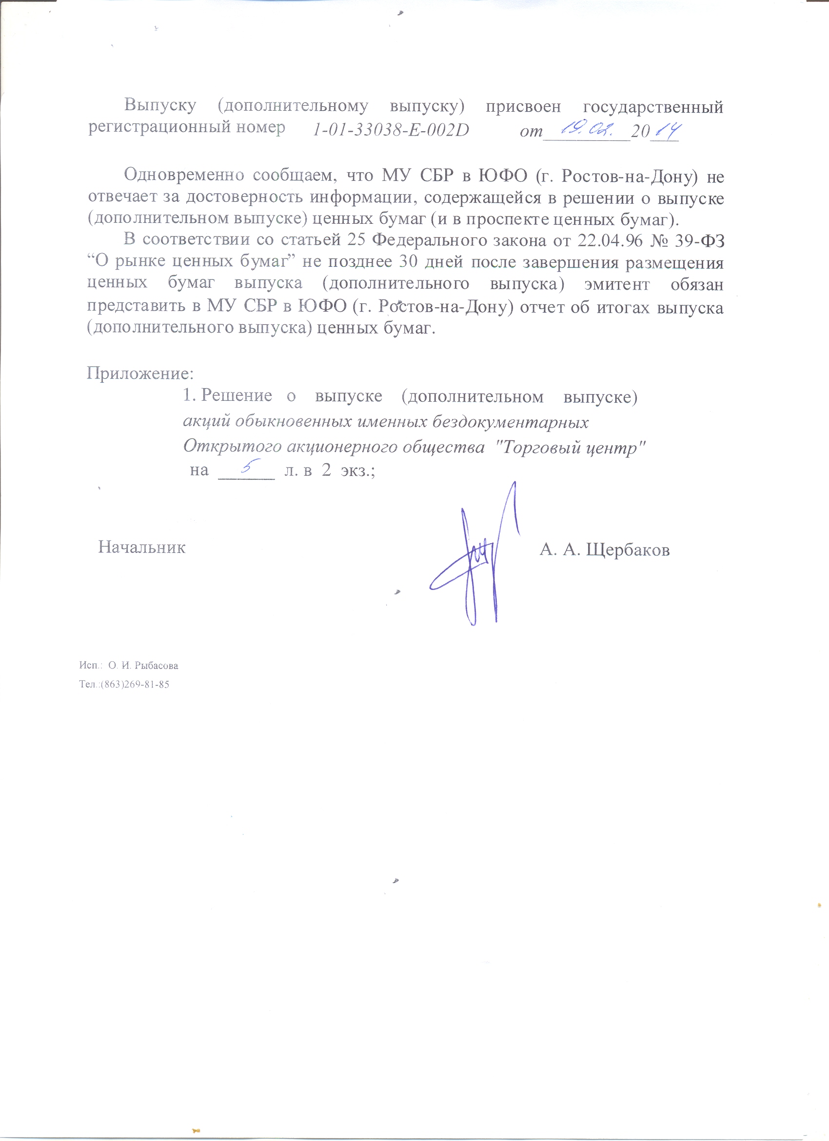 5 | Решение о выпуске (дополнительном выпуске) ценных бумаг | 1-01-33038-Е-002Д | 19.02.2014 | 20.02.2014 | 30.04.2014 | Загрузить (1,24 Мб) | |