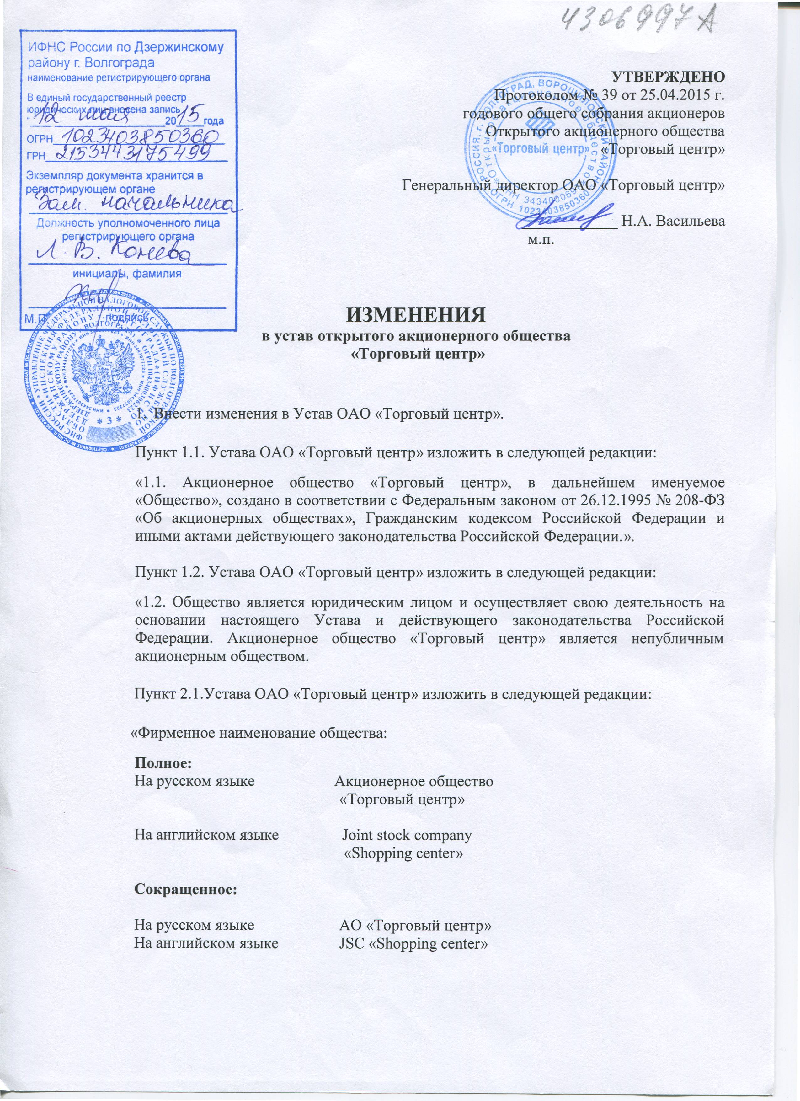 1 | Изменения в Уставе (4) | 12.05.2015 | 13.05.2015 | Загрузить (944,40 Кб) | |