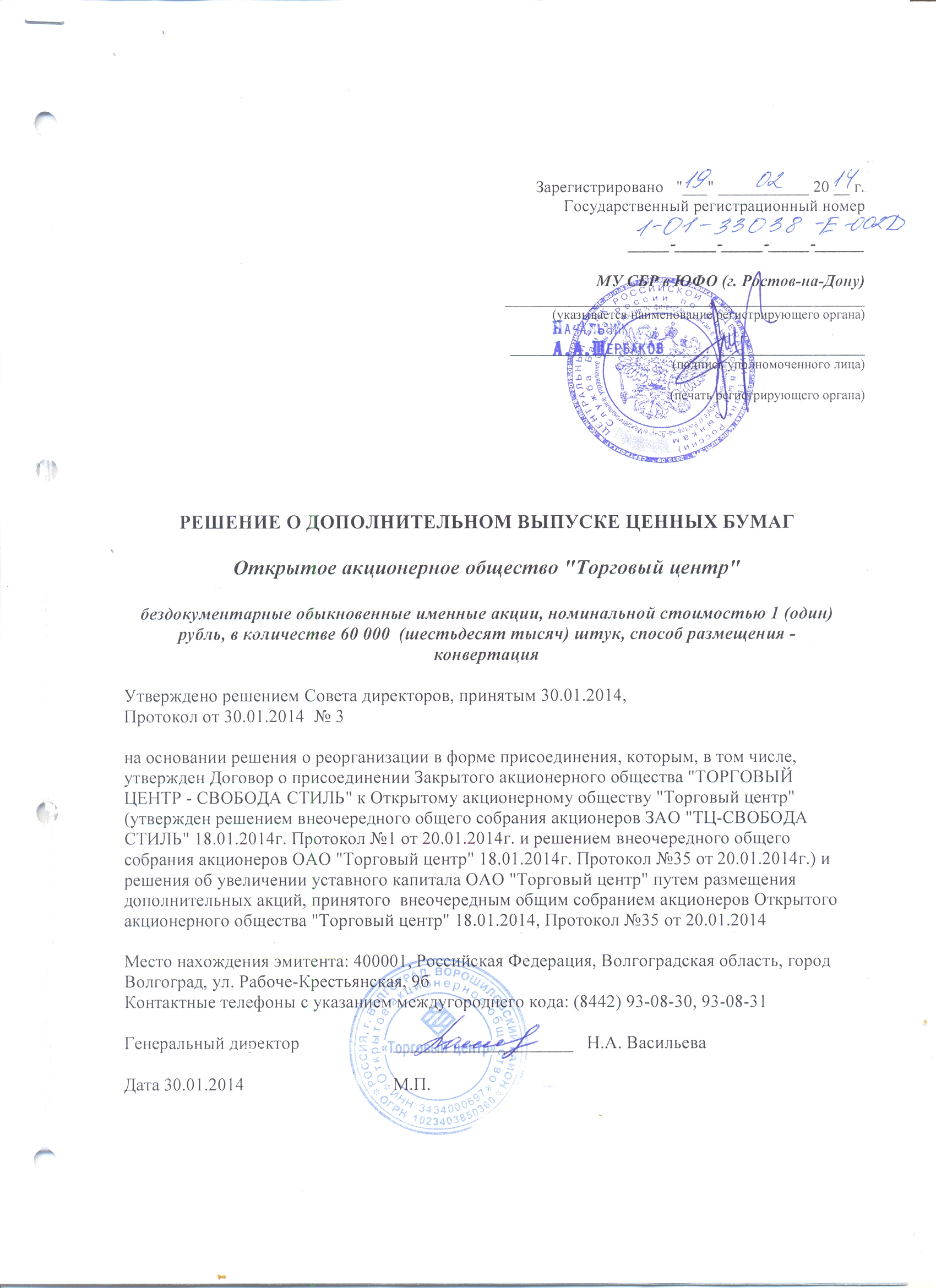 2 | Решение о выпуске (дополнительном выпуске) ценных бумаг | 1-01-33038-Е-002Д | 19.02.2014 | 20.02.2014 | 30.04.2014 | Загрузить (1,61 Мб) | |