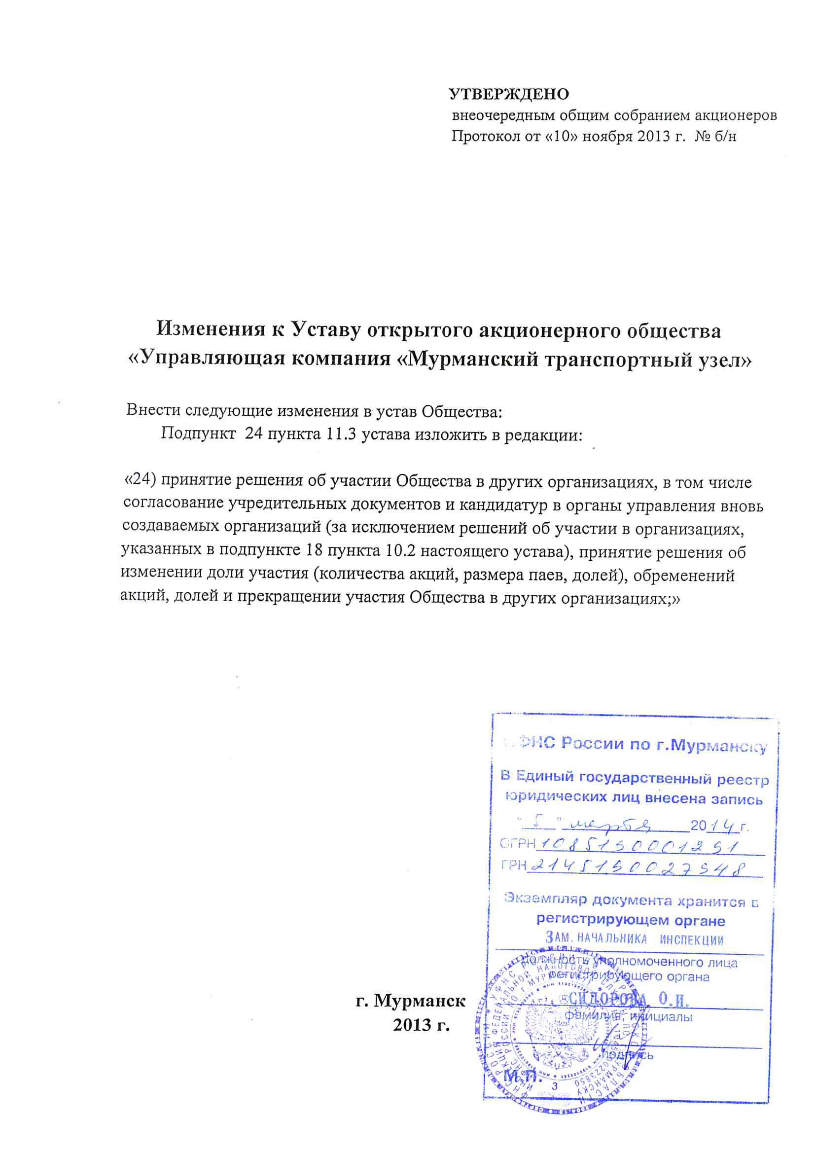 | 1 | Изменения в Уставе | 05.03.2014 | 18.03.2014 | Загрузить (240,67 Кб) | |