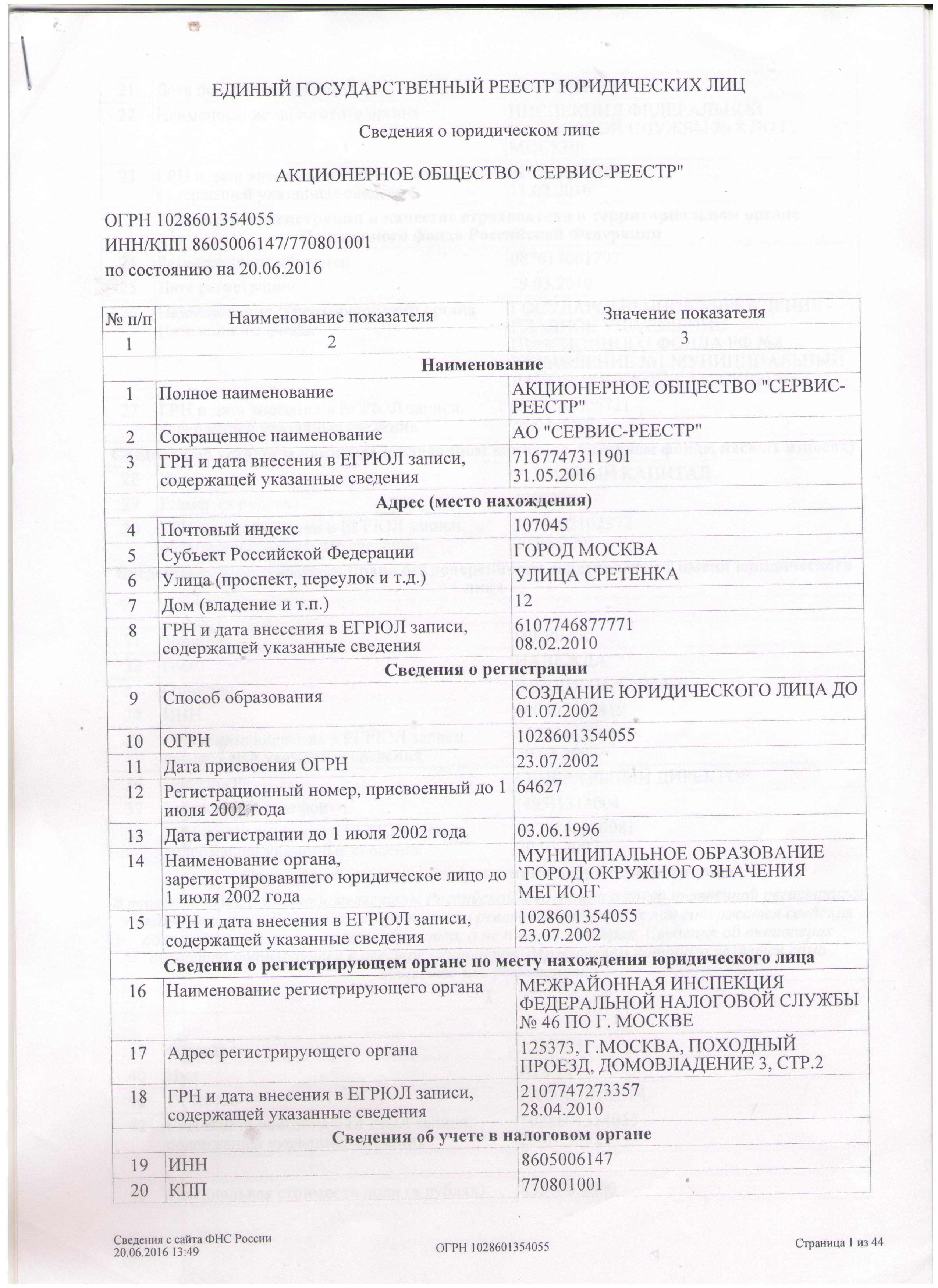 | 1 | Сведения о реестродержателе | 20.07.2016 | Загрузить (858,99 Кб) | |