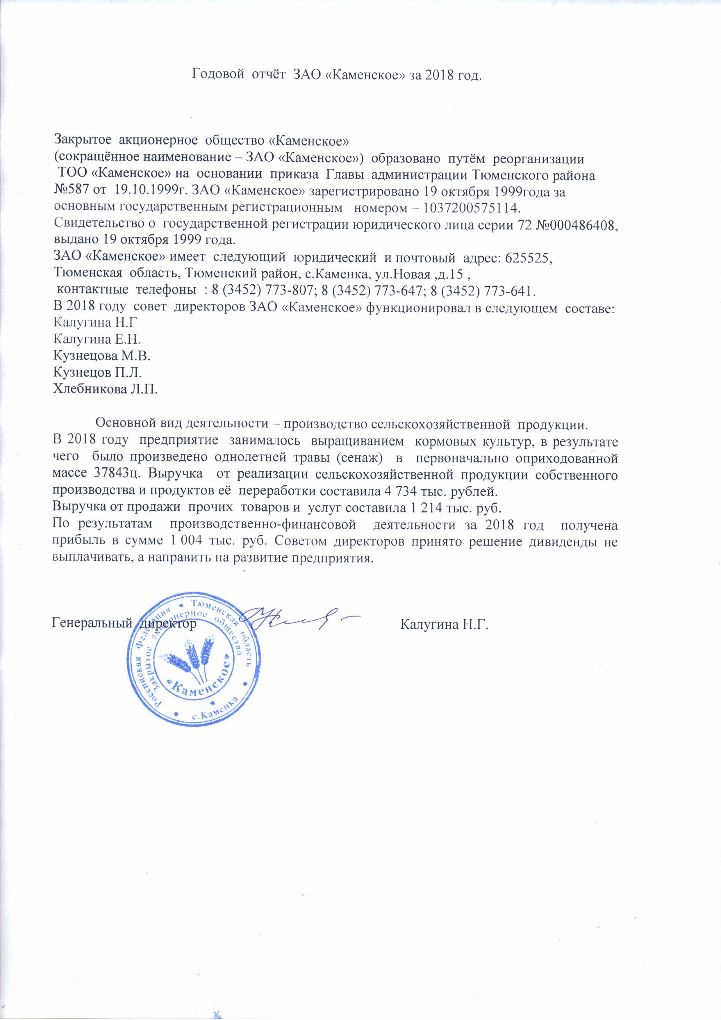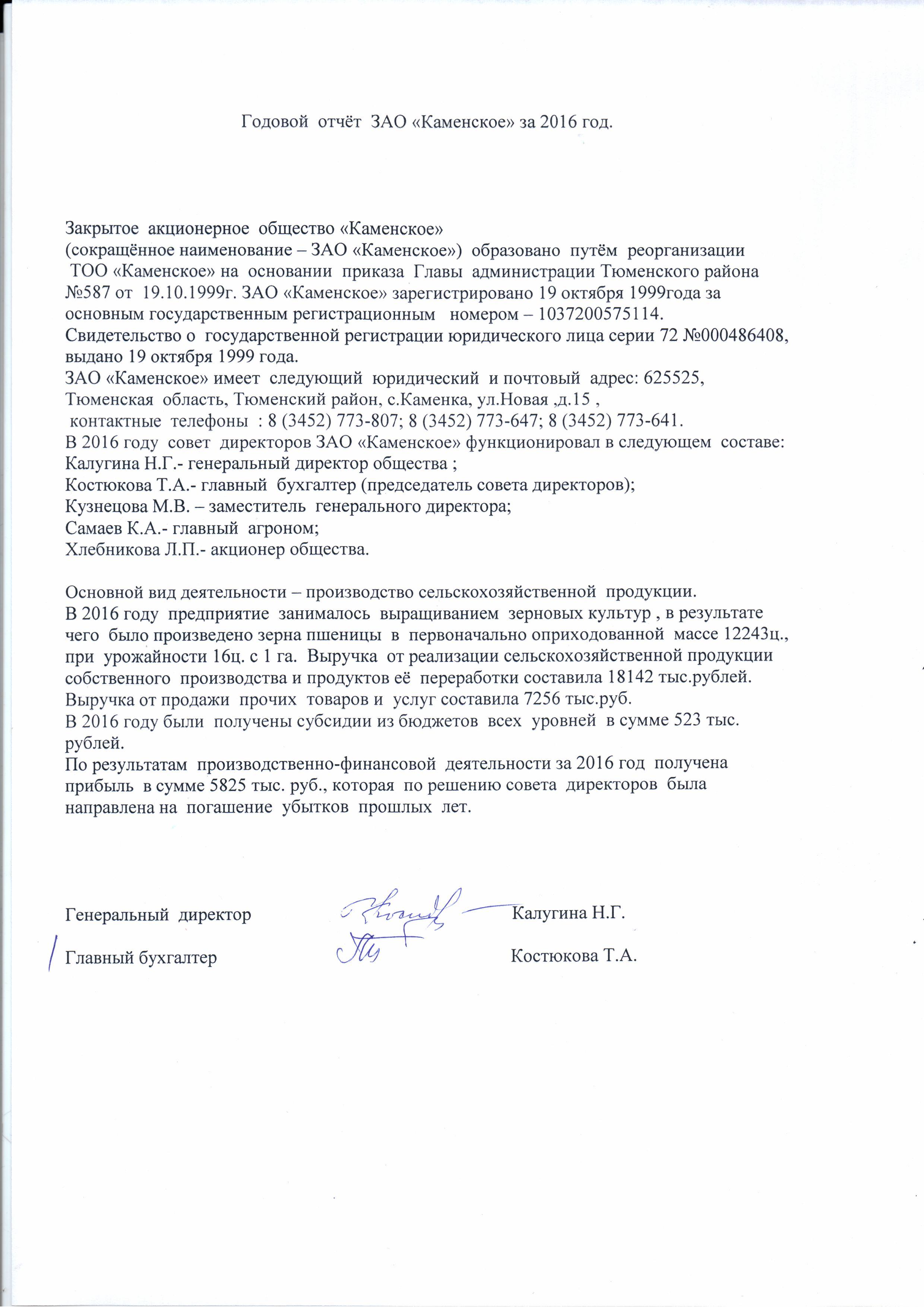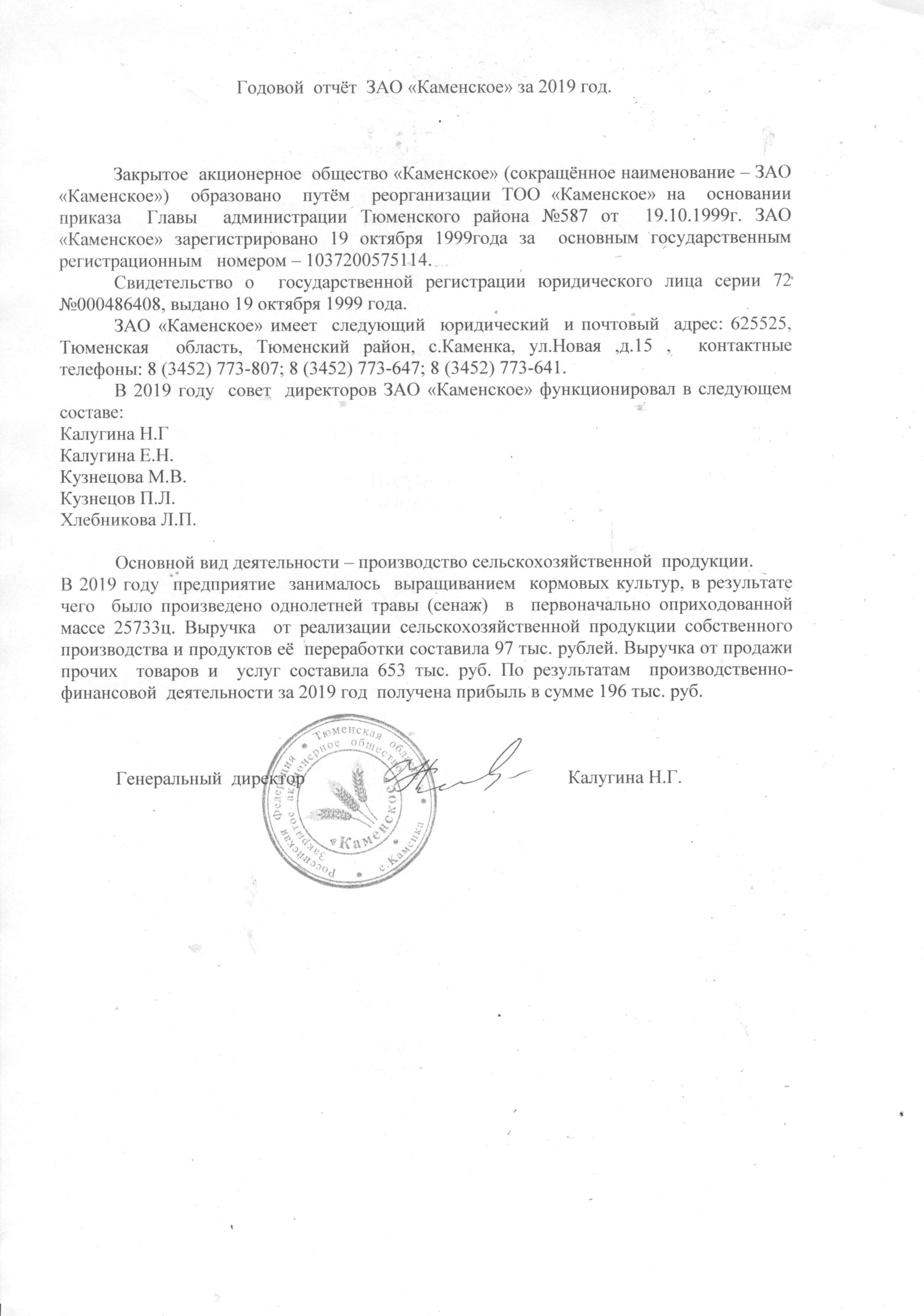 Юридический адрес 625525, Тюменская область, Тюменский район, с.Каменка, ул.Новая, 15