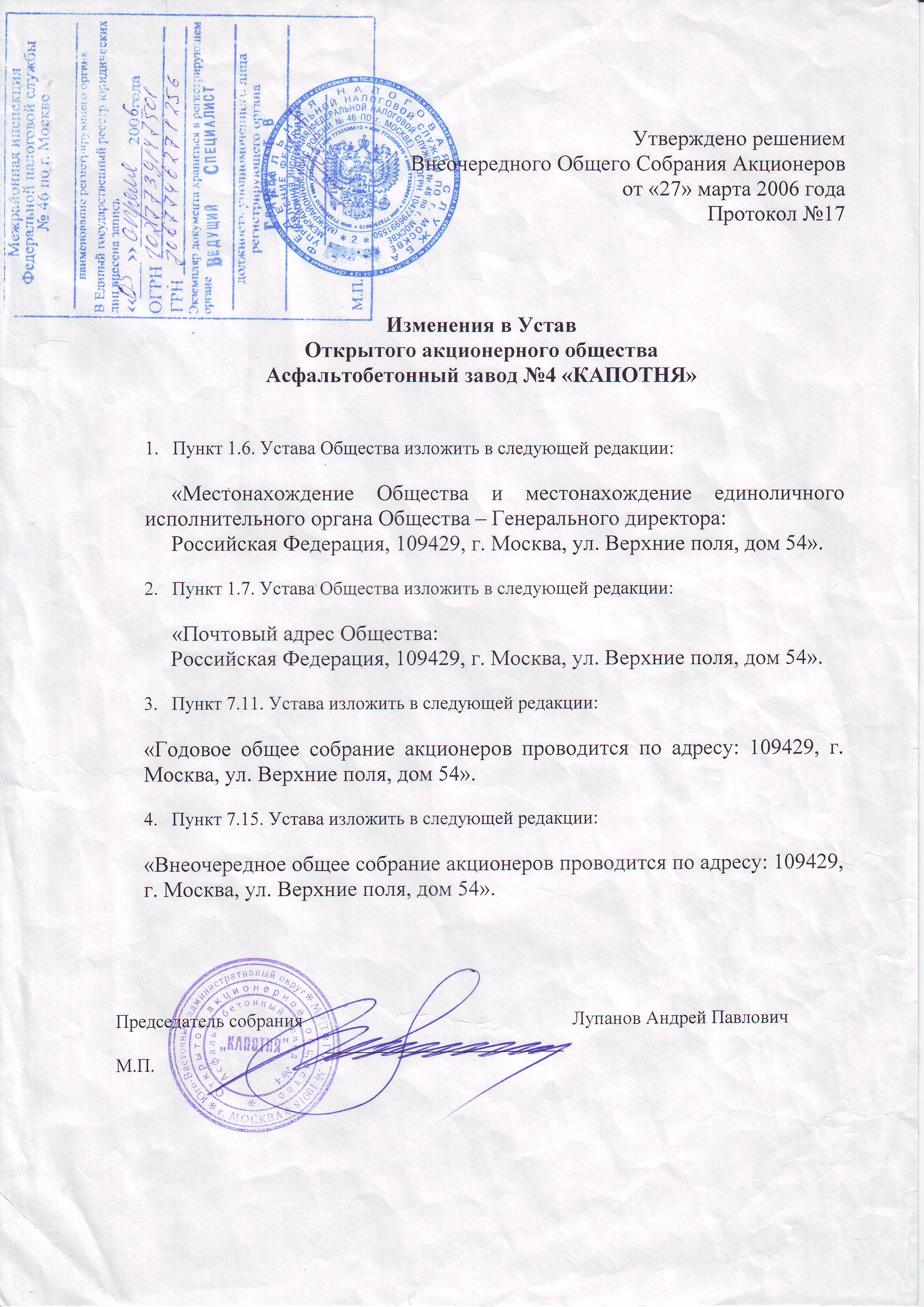 1 | Изменения в Уставе | 05.04.2006 | 21.07.2016 | Загрузить (1,09 Мб) | |