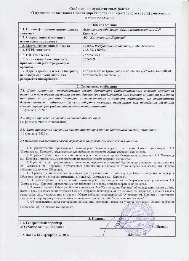 | Сообщение о проведении Совета директоров эмитента и его повестке дня от 18.02.2020 (143,77 Кб) |  |