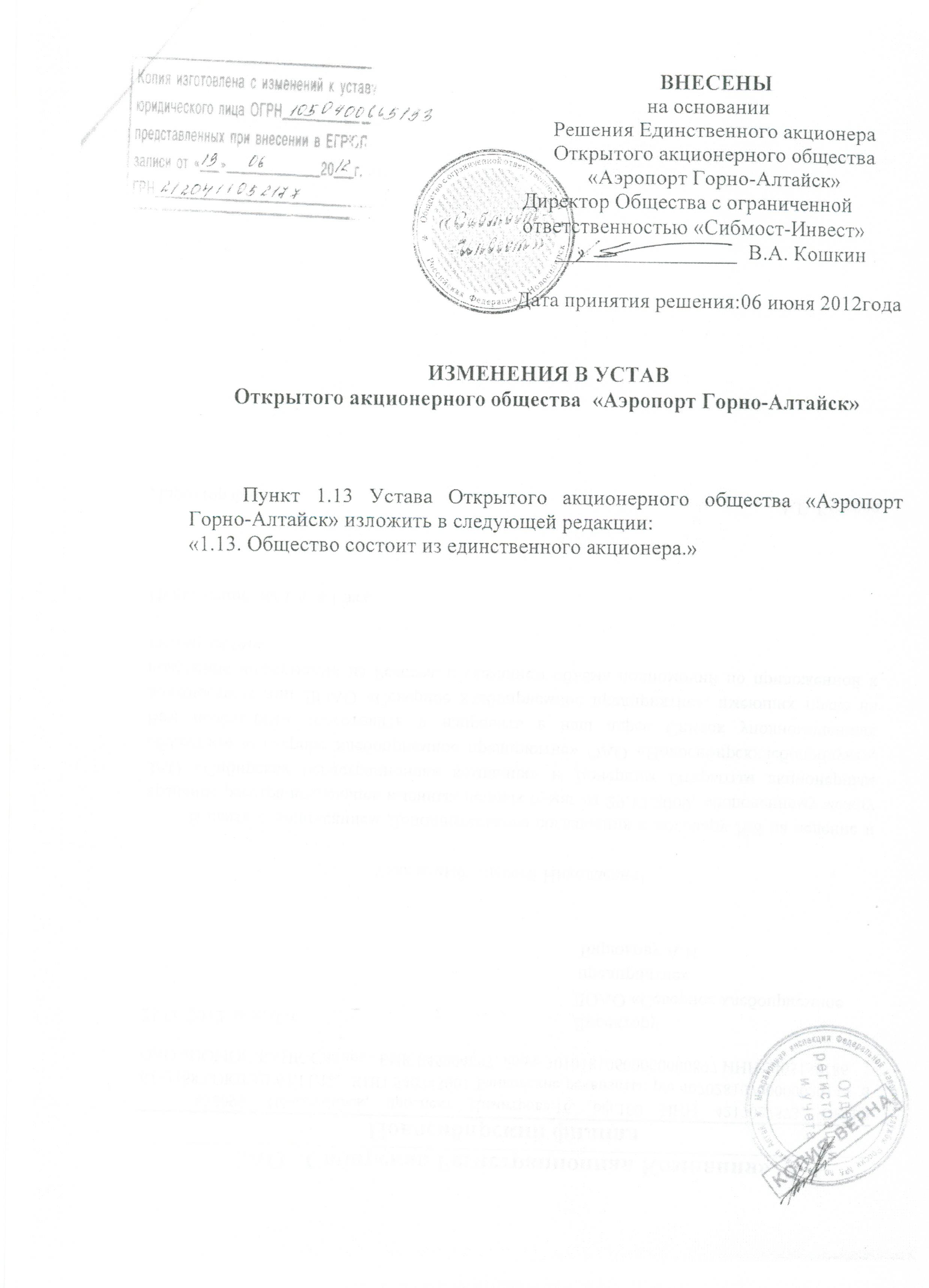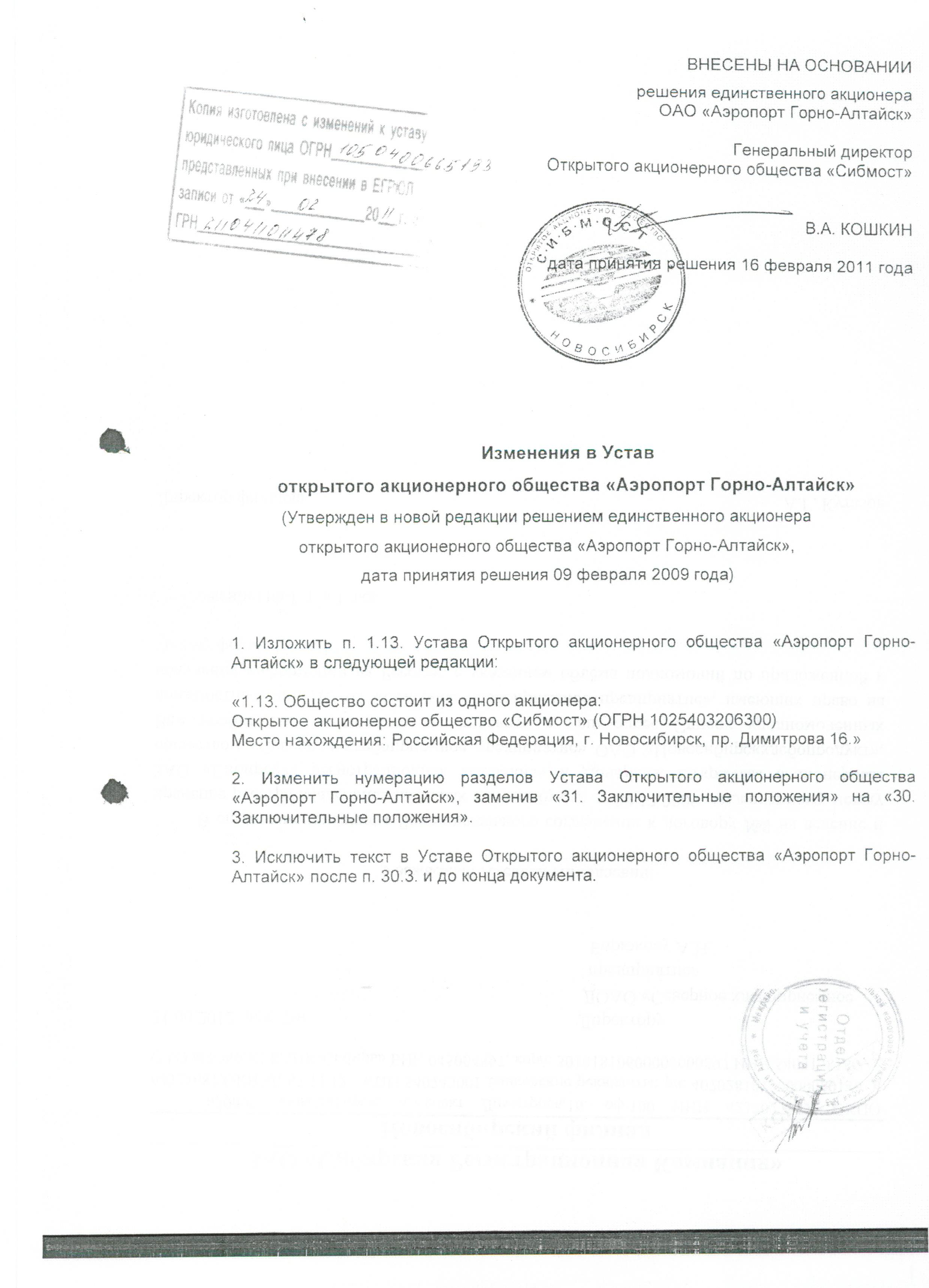 | 1 | Изменения в Уставе | 01.09.2012 | 16.08.2012 | Загрузить (359,45 Кб) | |